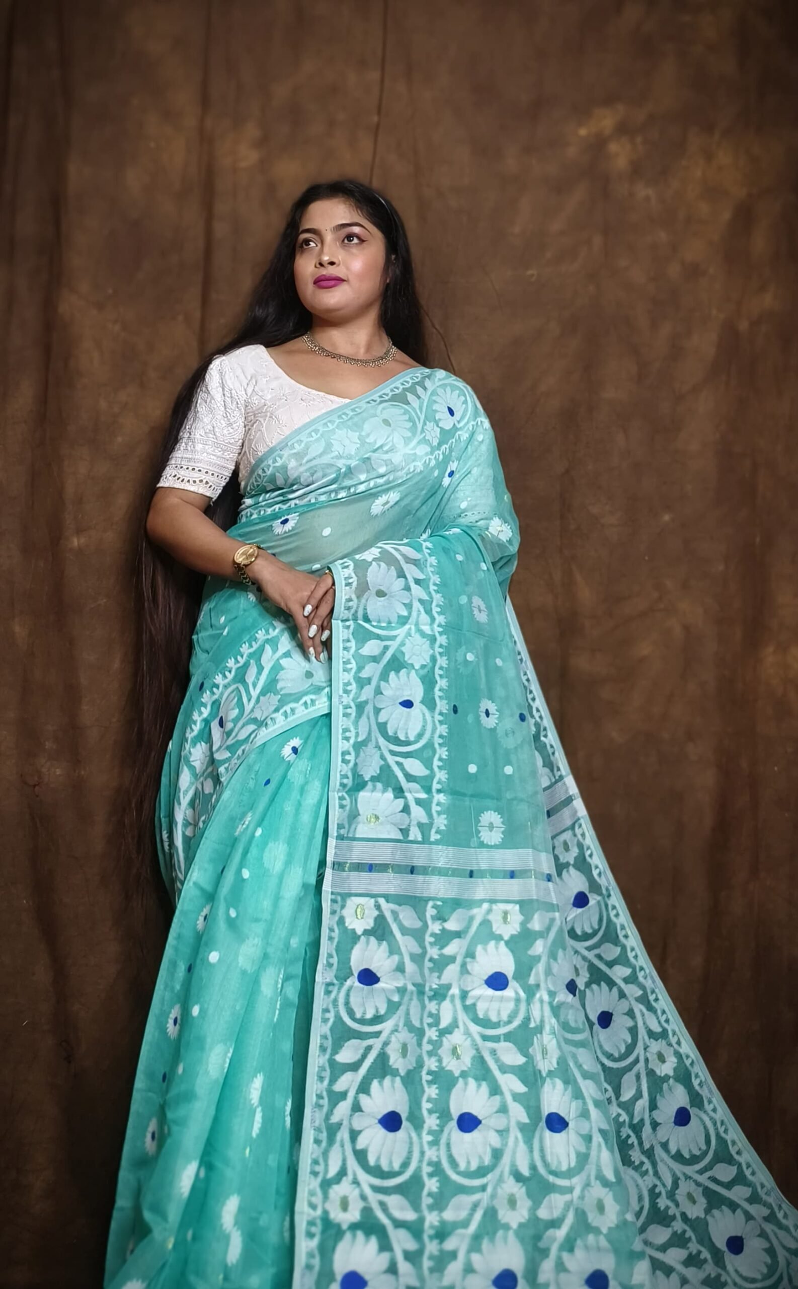 Be the first to review “New Lata Mina Jamdani Saree Aqua Green”