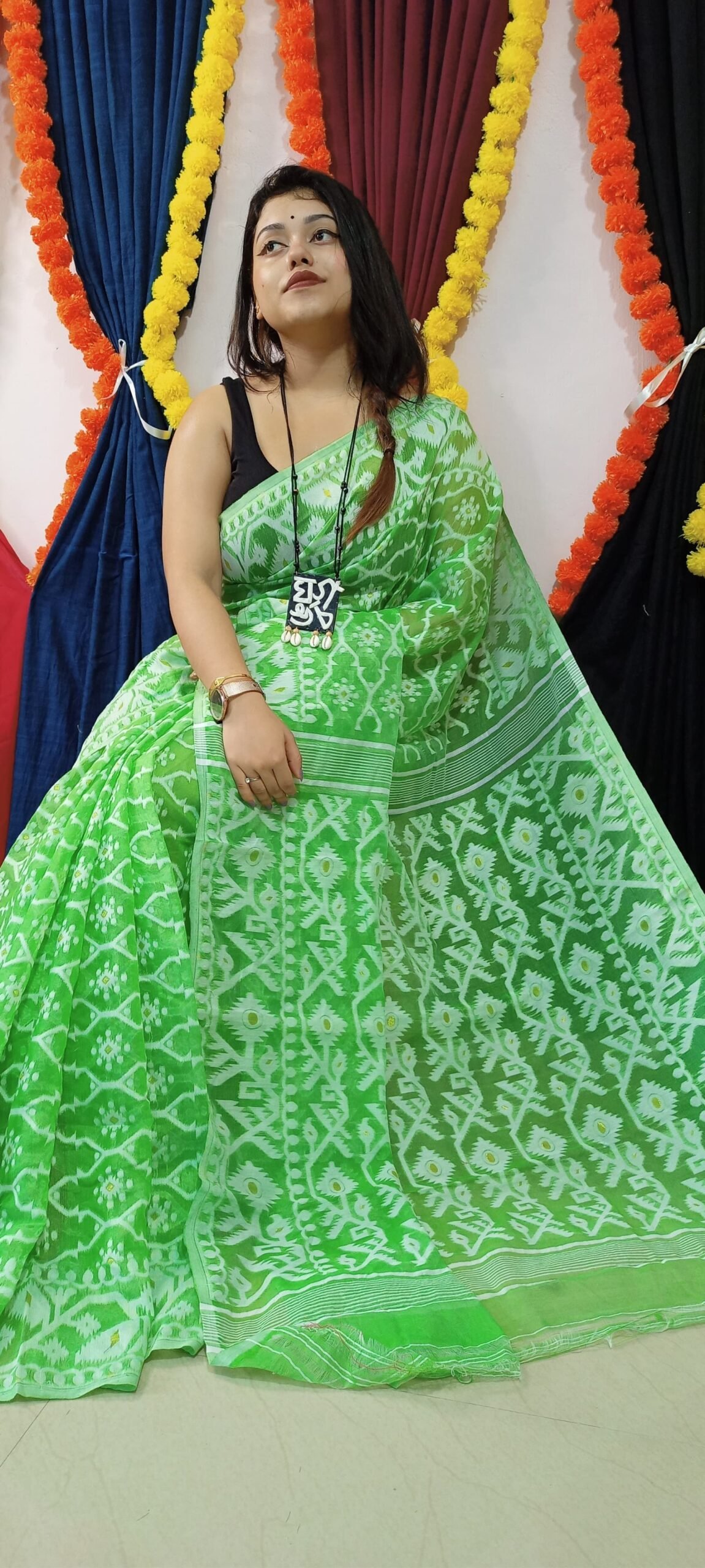 Siuli Jamdani Saree – Grace in Every Weave Green